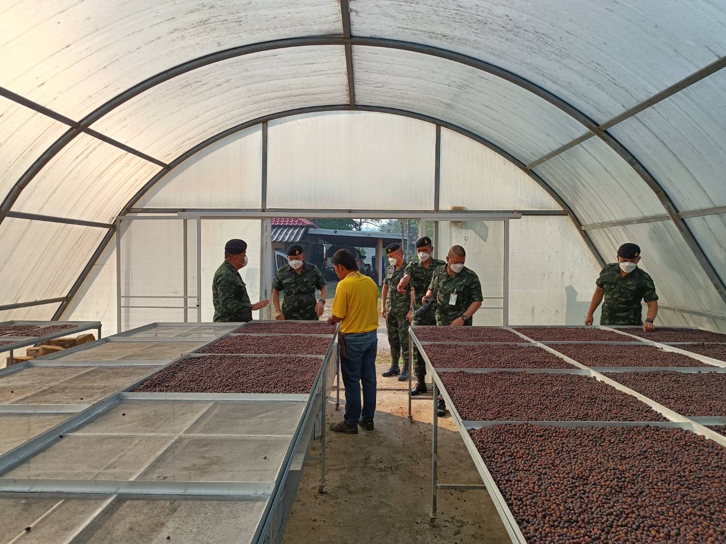 ผู้บัญชาการกองพลทหารราบที่ ๙ และคณะ เข้าดูกระบวนการผลิตสารกาแฟจากกลุ่มเกษตรกรหมู่บ้านสาละวะ-ไล่โว่